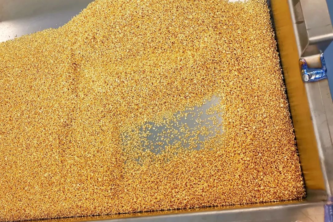 “溶金在溶金釜中進(jìn)行,溶金釜中的黃金由固體變?yōu)橐后w,先把不能溶解的雜質(zhì)過濾掉,再通過管道輸送到還原釜中進(jìn)行還原,然后將過濾好的液體金還原成固體海綿金,經(jīng)過清水清洗烘干后再次熔金,最終倒入模具中,凝固后取出過水冷卻擦干?!?span style="margin:0px;padding:0px;outline:0px;max-width:100%;box-sizing:border-box !important;overflow-wrap:break-word !important;color:#000000;font-family:PingFangSC-Light;font-size:14px;letter-spacing:2px;text-align:start;text-indent:28px;widows:1;">張文龍解釋說,“下面要準(zhǔn)備澆鑄生產(chǎn)工序,先把熔好的金塊放入制粒機(jī),通過熔化,漏到水中,制成很小的金顆粒,方便后道工序配重。這個過程叫制粒?!?/span>